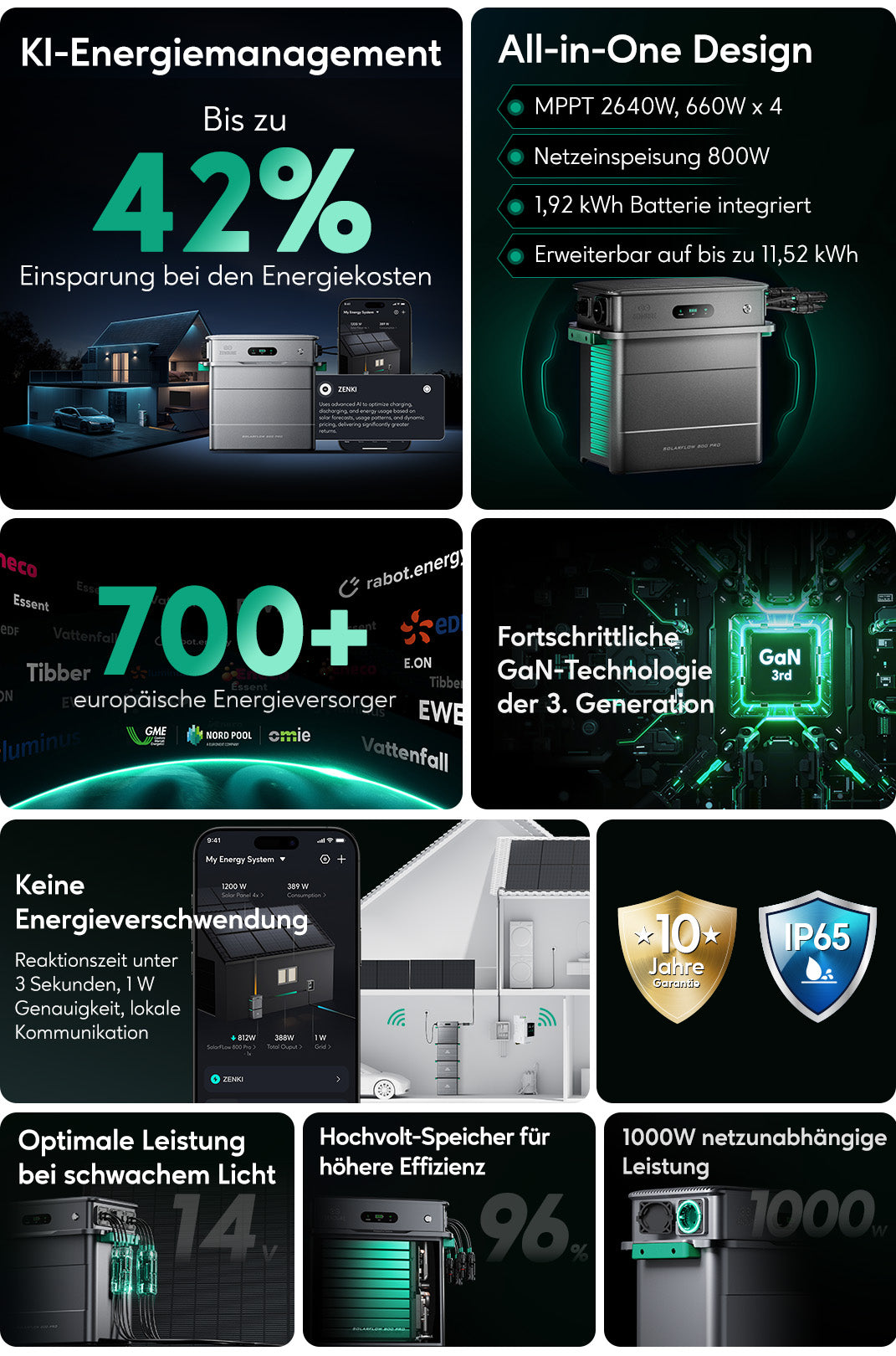 Der SolarFlow 800 Pro nutzt die dritte Generation der GaN-Halbleitertechnologie (Galliumnitrid), um Energieverluste bei der Umwandlung deutlich zu reduzieren.